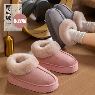 厚底棉拖鞋女秋冬季室内居家毛毛绒棉鞋外穿增高保暖包跟雪地靴女