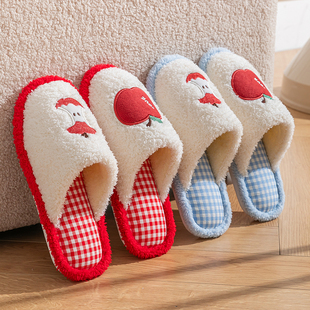 买一送一棉拖鞋女秋冬季室内家居保暖可爱情侣一对毛毛绒拖鞋男士