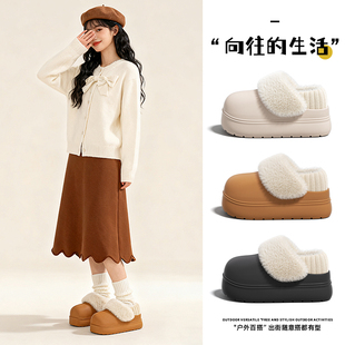 2025新款厚底棉拖鞋女款冬季外穿加绒包跟保暖棉鞋女士防滑雪地靴